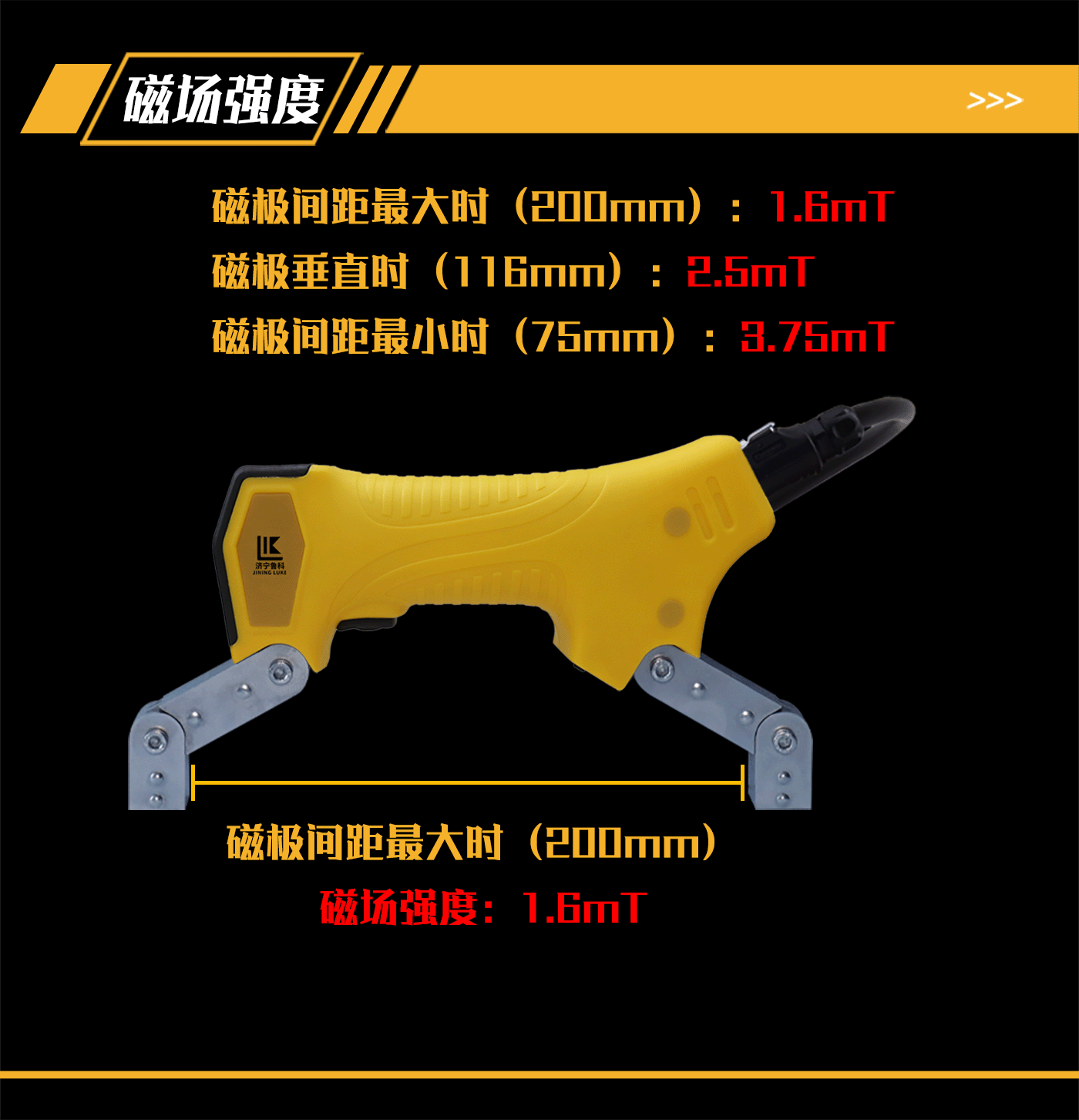 5、超短磁極腳工作模式,可提高磁場強度、靈敏度。