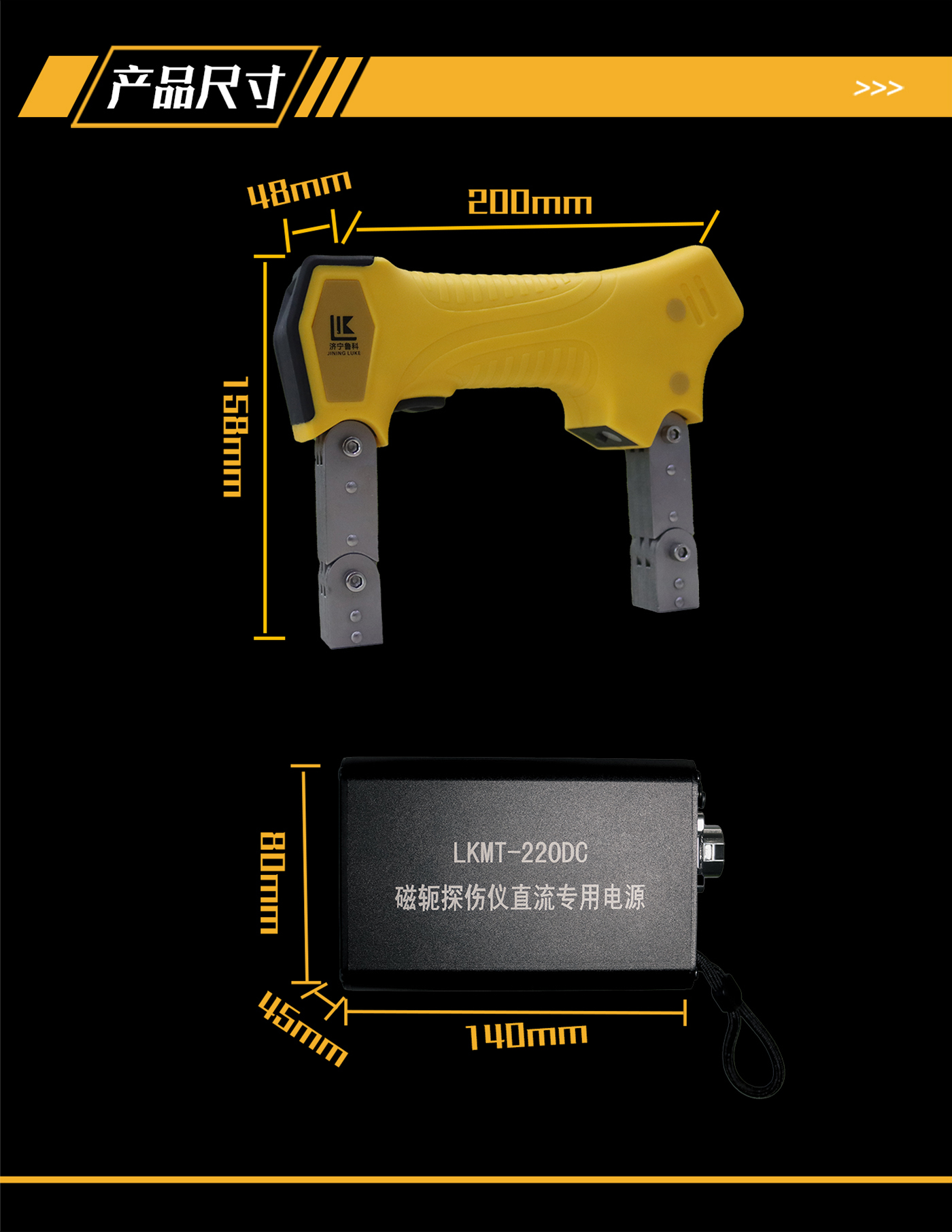 1、LKMT-220DC交直流磁軛探傷儀由D型探頭、電源適配器、鋰電池電源組成;產(chǎn)生交流或直流磁場進行探傷。