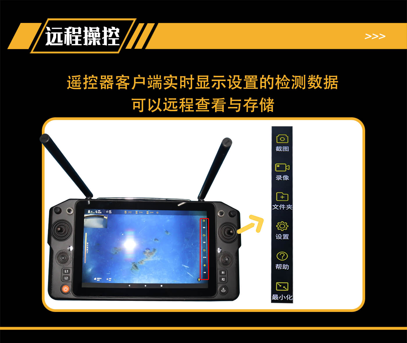 (2)遙控器客戶端實(shí)時(shí)顯示探傷過(guò)程,能夠進(jìn)行缺陷的框選標(biāo)記、測(cè)量、儲(chǔ)存;