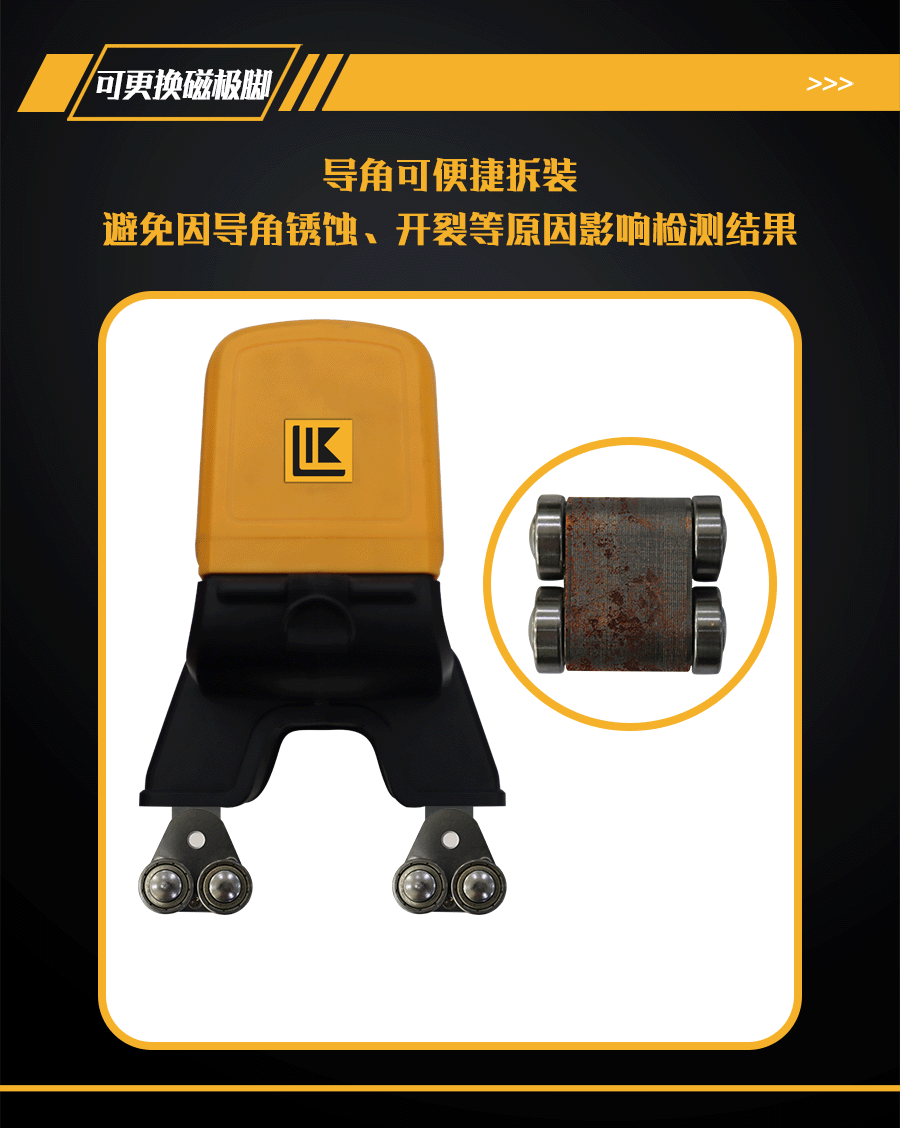 7、每個(gè)磁極腳安裝4只軸承,步進(jìn)探傷無(wú)阻力;每個(gè)磁極腳可自行便捷拆裝、更換;