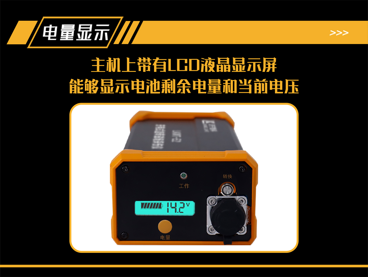 4、儀器主機帶有LCD顯示屏及操作按鍵,可顯示剩余電量和電壓;鋰電池電源帶有電量指示燈;