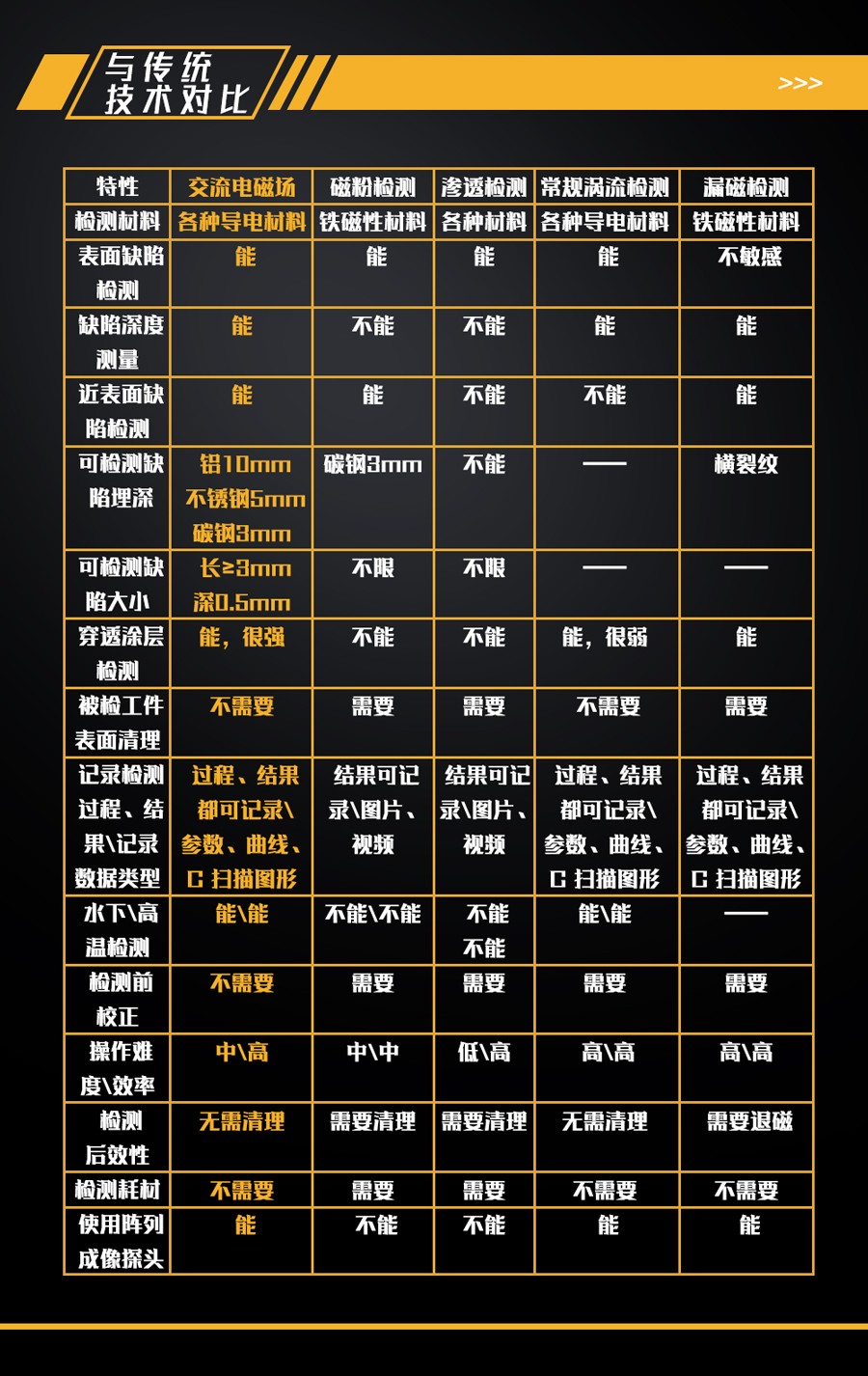6、便攜式的檢測(cè)系統(tǒng),減少檢測(cè)人員的勞動(dòng)強(qiáng)度提升檢測(cè)效率;探頭可以較快的速度進(jìn)行掃查,檢測(cè)無(wú)后效性,無(wú)需退磁、表面清理等;