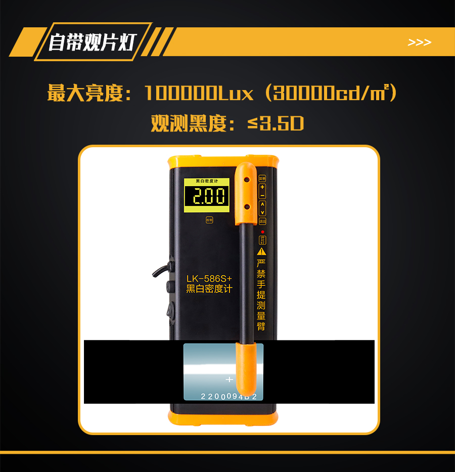 5、自帶評片燈,可測觀測黑度3.5D及以下的膠片,可一鍵開關、無極調光。